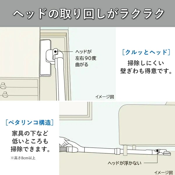 ・前、左右からごみを引き寄せ、壁ぎわのごみも吸い込む