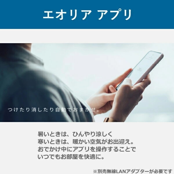 ◎エオリア アプリ 暑いときは、ひんやり涼しく、寒いときは、暖かい空気がお出迎え。