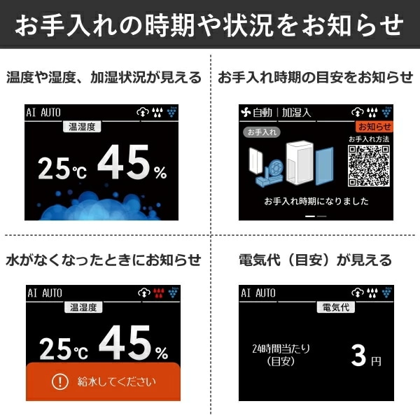 目指して制御する自動運転や、加湿フィルターの自動洗浄