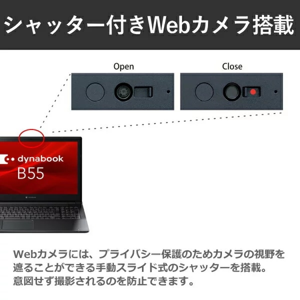 ◎シャッター付きWebカメラ搭載 Webカメラには、プライバシー保護のためカメラの視野を