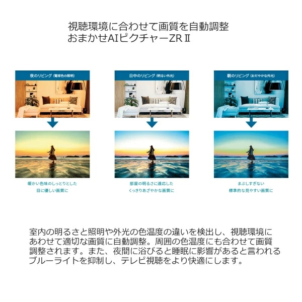 ◎視聴環境に合わせて画質を自動調整 室内の明るさと照明や外光の色温度の