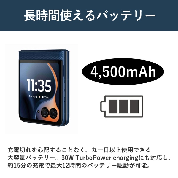 ◎大容量4,500mAhバッテリー 充電切れを心配することなく、