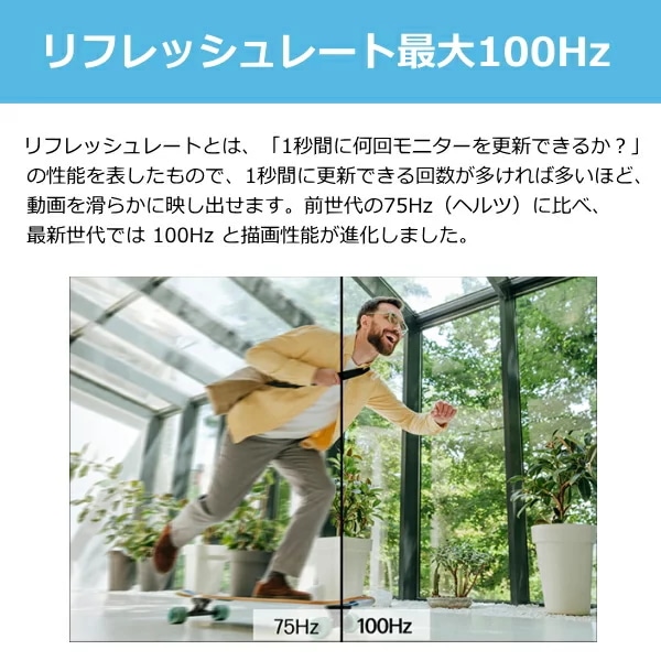 ◎リフレッシュレート100Hz 100Hzの高リフレッシュレートは、スクロールやウィンドウ操作、