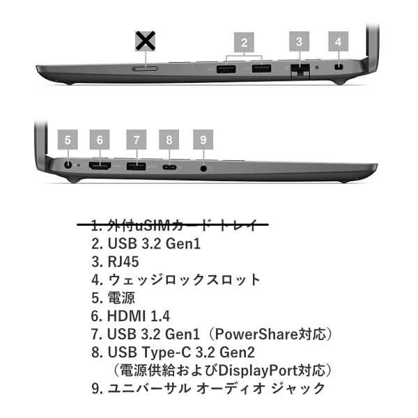 USB 3.2 Gen 1 ポートx1(PowerShare対応)、