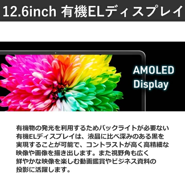 ◎12.6inch 有機ELディスプレイ 有機物の発光を利用するためバックライトが必要ない