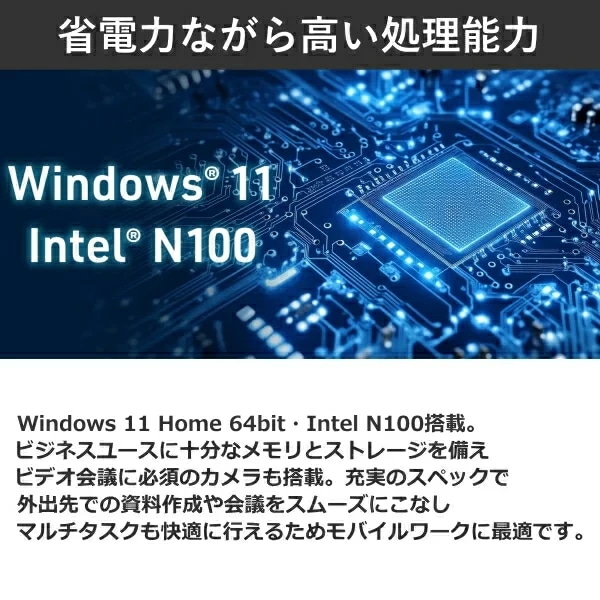 Windows 11 Home・Intel N100搭載。ビジネスユースに