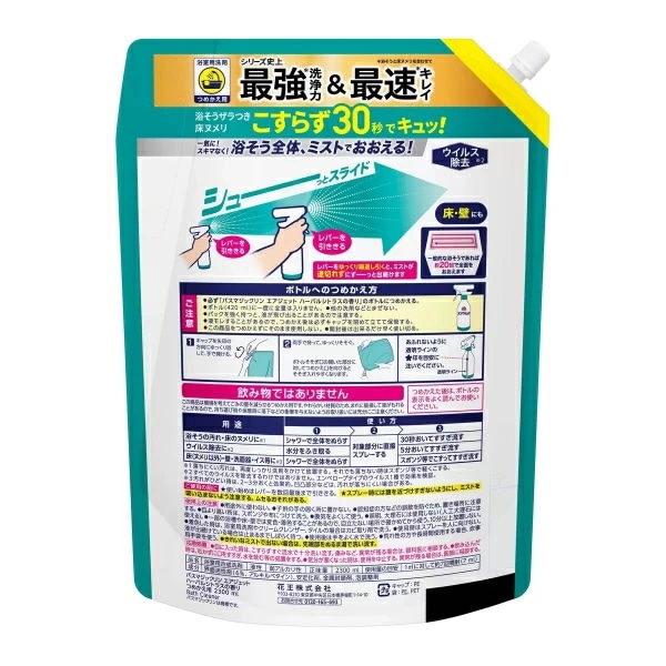 【2個セット】バスマジックリン エアジェット 詰め替え 2300ml ハーバルシトラスの香り こすらない 約 6.8回分 ウイルス除去 花王 kao バスマジックリンエアジェット お風呂洗剤