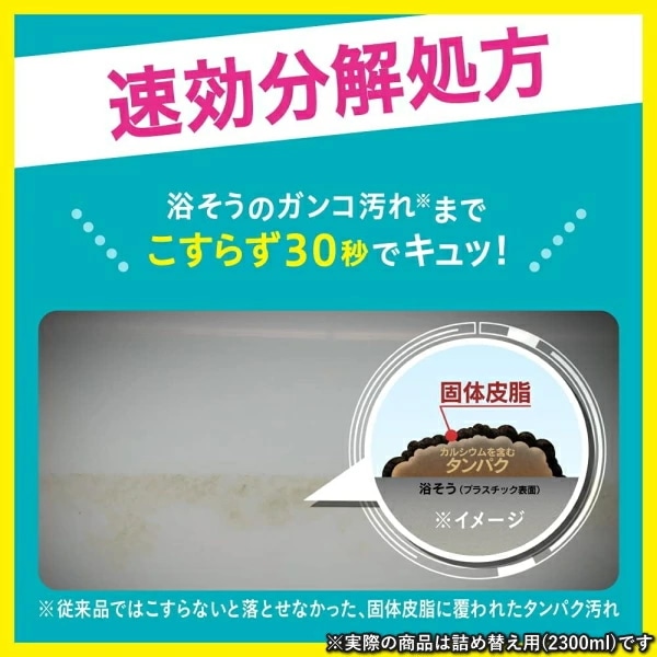 ◎浴槽のタンパク汚れ 速攻分解処方で、本当にこすらず 30秒!