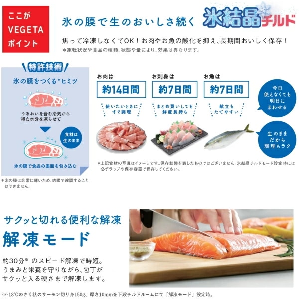 ◎Deliチルド 食材が凍らないギリギリの温度でムラなく冷やします。