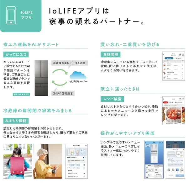 ◎IoLIFEアプリ IoLIFEアプリと家電を接続することで、庫内の状態が