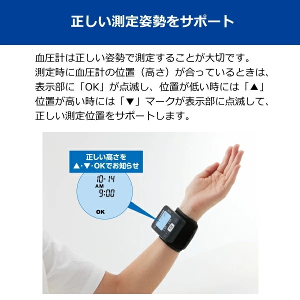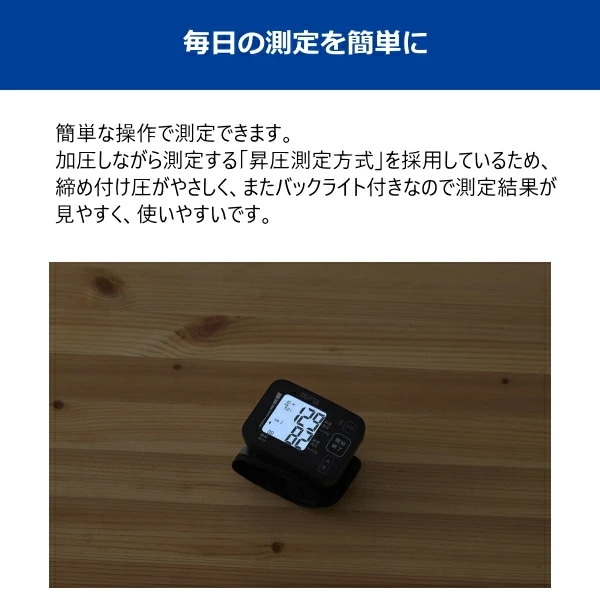 手首に巻くだけで簡単に血圧を測れるコンパクトタイプの血圧計です。