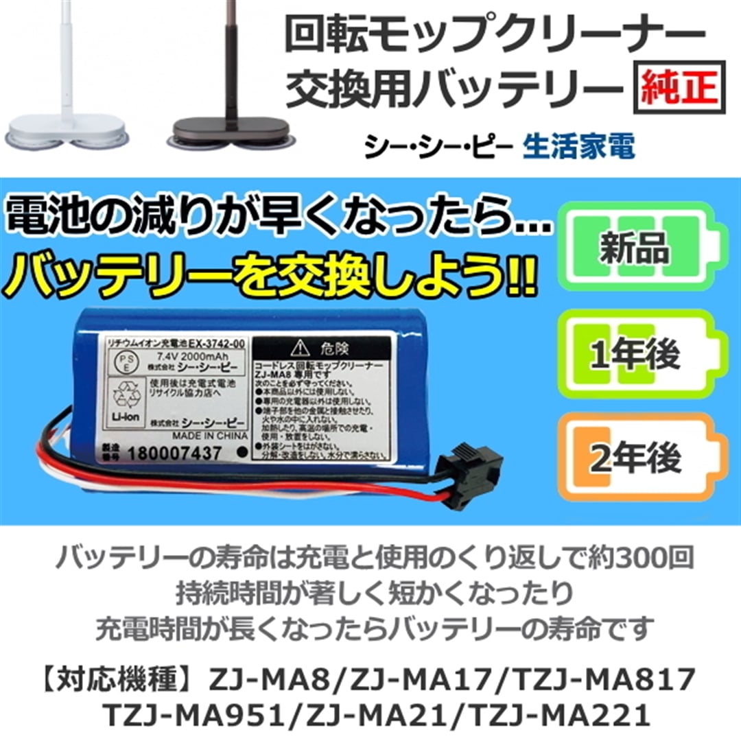 回転モップクリーナー バッテリー 充電式バッテリー コードレス回転モップクリーナー用バッテリー 対象機種 ZJ-MA8 ZJ-MA17 TZJ-MA817 TZJ-MA951 ZJ-MA21 ZJ-MA41 TZJ-MA221 CCP シー・シー・ピー EX-3742-00 EX374200