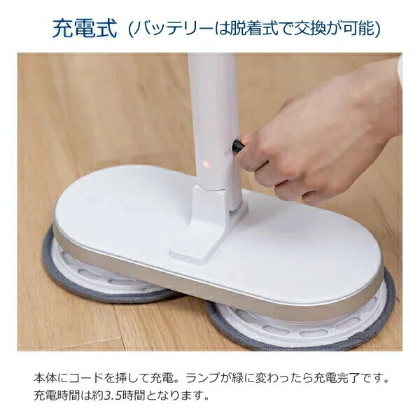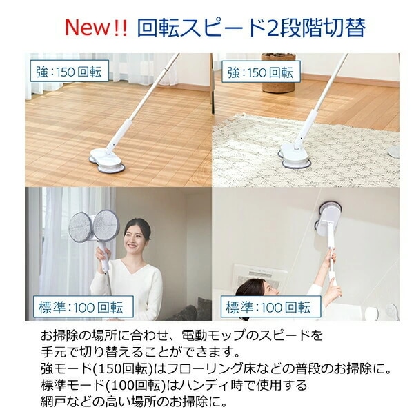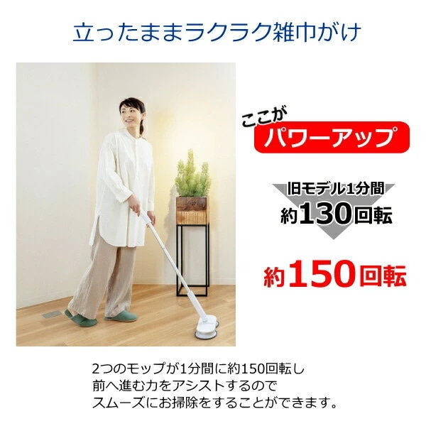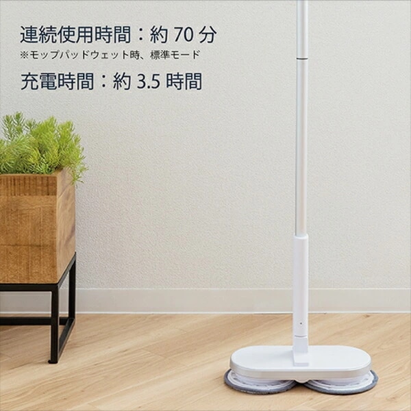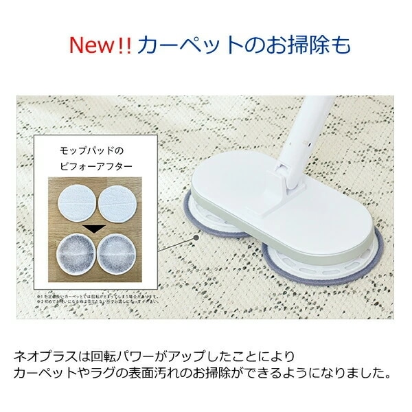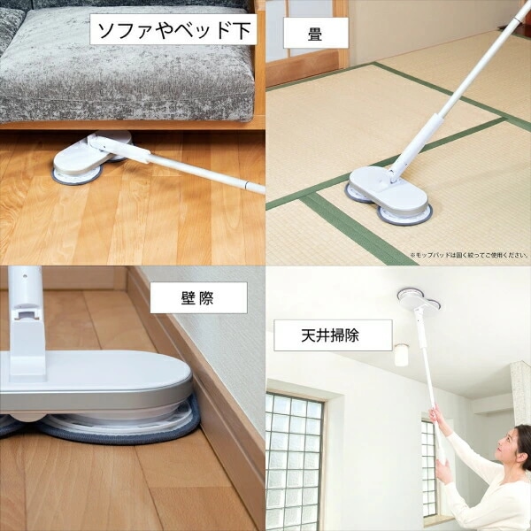回転モップクリーナー コードレス ネオプラス フローリング カーペット 畳 窓 網戸 水拭き 充電式 シーシーピー CCP Neo+ ZJ-MA21-WH ZJ-MA21 電動モップ スティッククリーナー 窓 網戸 畳 天井/見えない雑菌を99.9%除去