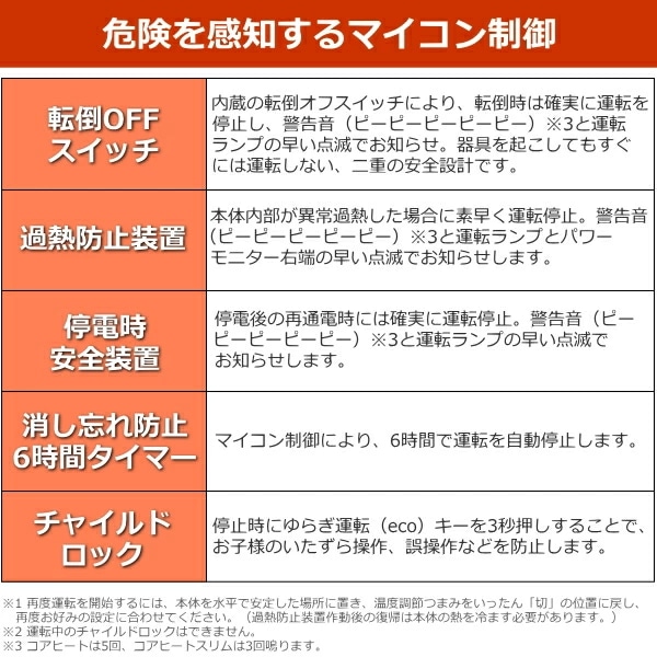 ◎すばやくあたたかい 運転停止から再運転されるまでの時間をカウントし、ヒーターが