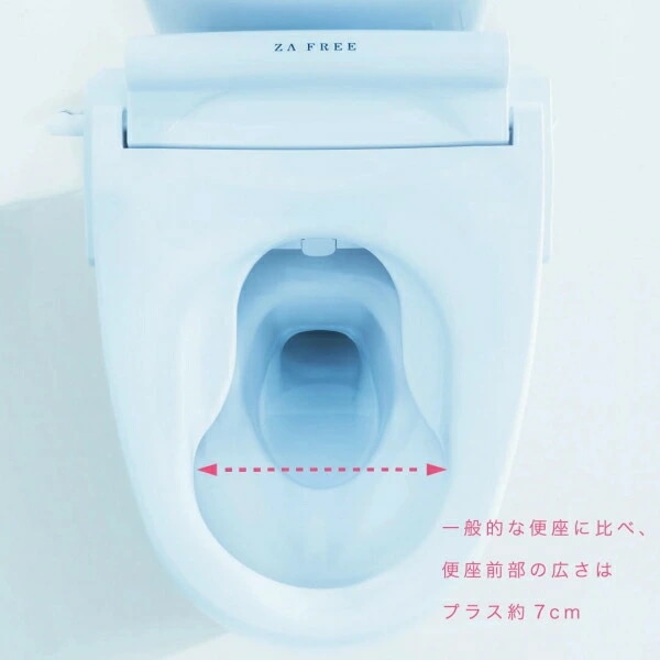 一般的な便座に比べ、便座前部の広さがプラス約7cmと広いので