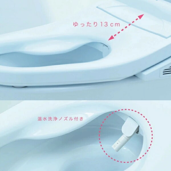 便座の後部にゆったり腰掛けながら、前部の広いスペースを