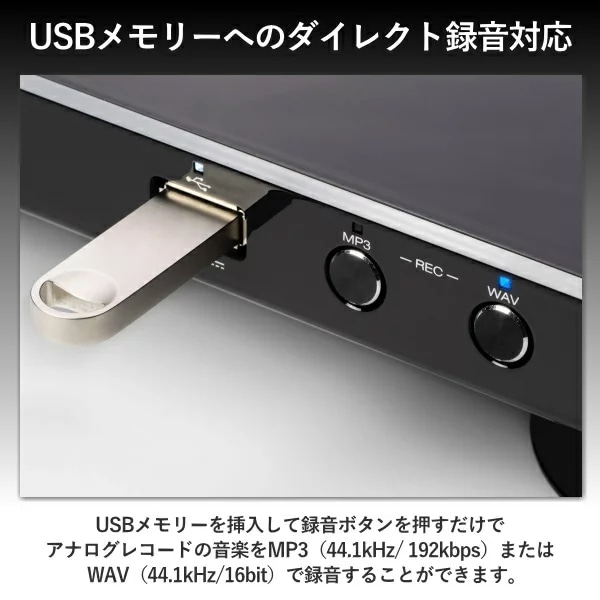 ◎USBメモリーへのダイレクト録音対応 USBメモリーを挿入して録音ボタンを押すだけで
