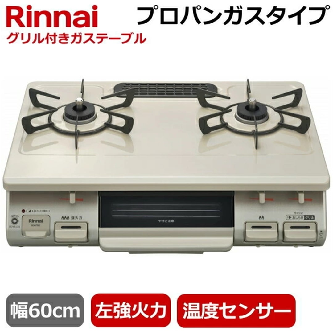 リンナイ 据え置きガスコンロ テーブルコンロ 二口 幅60cm 左強火力 水無片面焼きグリル プロパンガス プッシュ点火 ガステーブル コンロ ガスコンロ Rinnai KG67BEL KG67BEL-LP クリームベージュ