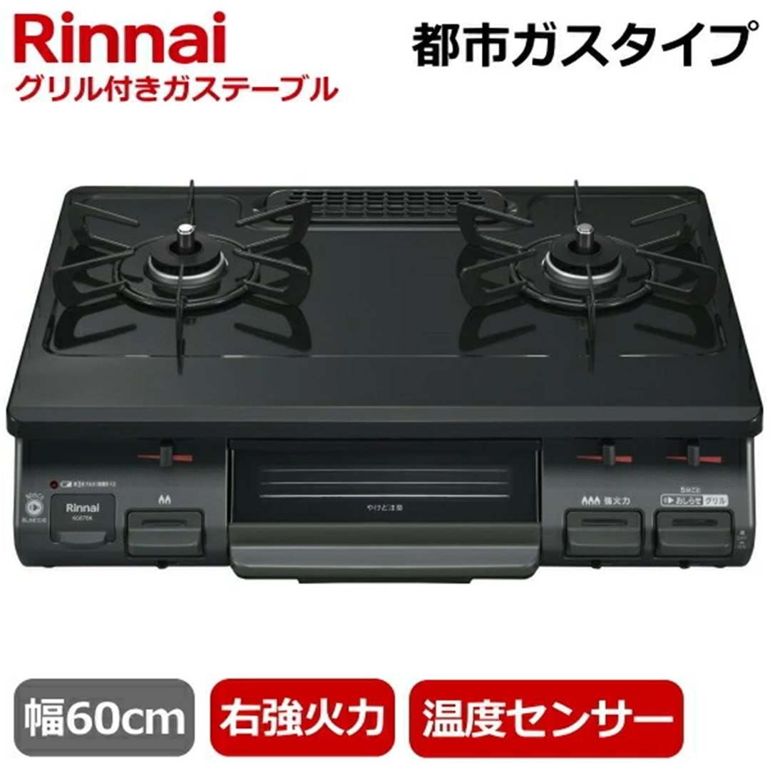 リンナイ 据え置きガスコンロ テーブルコンロ 二口 幅60cm 右強火力 水無片面焼きグリル 都市ガス プッシュ点火 ガステーブル コンロ ガスコンロ Rinnai KG67BKR KG67BKR-13A 12A13A ブラック