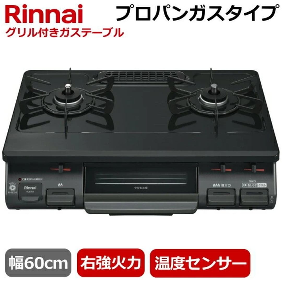 リンナイ 据え置きガスコンロ テーブルコンロ 二口 幅60cm 右強火力 水無片面焼きグリル プロパンガス プッシュ点火 ガステーブル コンロ ガスコンロ Rinnai KG67BKR KG67BKR-LP ブラック