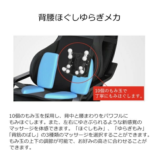 ◎背腰ほぐしゆらぎメカ 10個のもみ玉を採用し、背中と腰まわりを