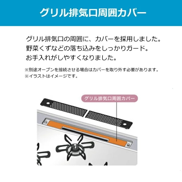 ◎グリル排気口周囲カバー グリル排気口の周囲に、カバーを採用しました。