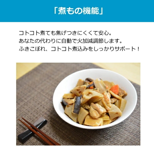 の調理をサポートする便利機能を多数搭載です。水なし両面焼き
