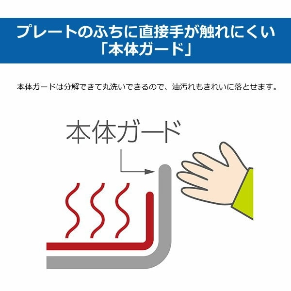 プレートのふちに直接手が触れにくい「本体ガード」や、