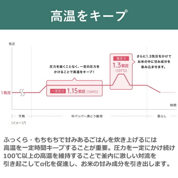 釜内に激しい対流を引き起こして、お米の甘み成分を引き出します。 ------------------------------------------------------------------------------------------