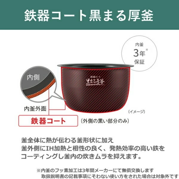 ◎内釜3年間保証 内釜のフッ素加工は3年間メーカーが無償交換します。