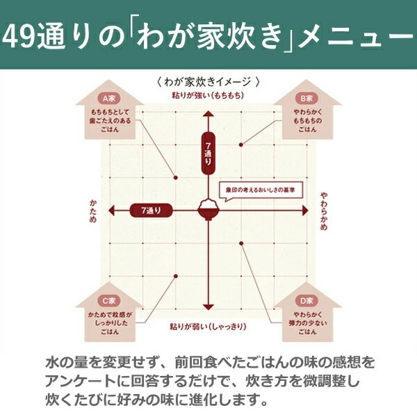 回答するだけで炊き方を微調整し、炊くたびに好みの味に進化します。