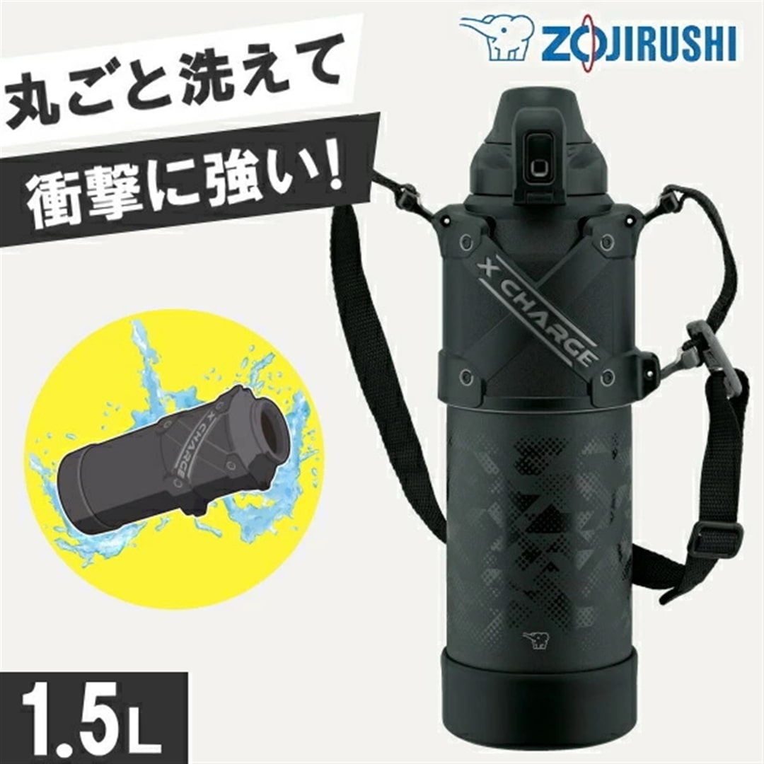 象印 水筒 シームレス 1.5リットル 保冷 直飲み ワンタッチ スポーツドリンクOK ショルダー 広口 SD-HB15 ブラック ステンレスクールボトル ZOJIRUSHI SDHB15 SD-HB15-BA SDHB15BA クールボトル 水筒 1.5l 洗いやすい 象印水筒1.5リットル