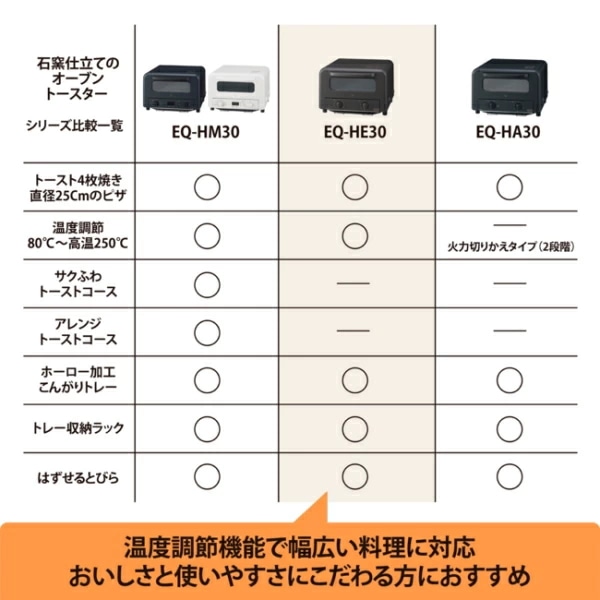 こんがり焼き上げます。温度を選び、タイマーを設定するだけの