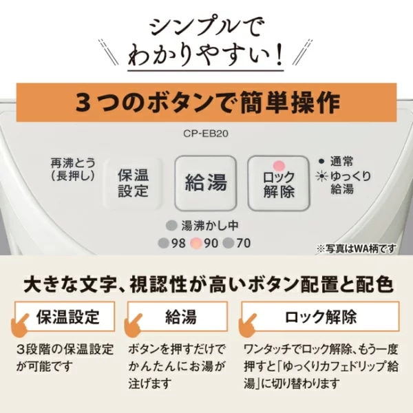 「70℃保温」は、一度沸とうさせたお湯を70℃で保温する、