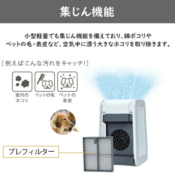 プレフィルターでしっかりキャッチ 小型軽量でも集じん機能を備えており、