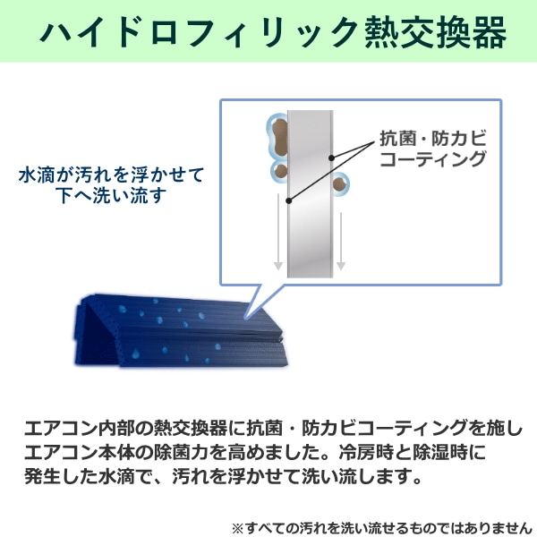 ◎業界初!熱交換器加熱除菌 冷房や除湿の運転時に発生したカビが増える原因となる水滴を