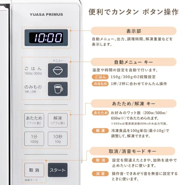 【ヘルツフリー】電子レンジ 17L ユアサプライムス 500W 横開き ターンテーブル 消音モード 小型 解凍 レンジ PRE-690HFG PRE690HFG 新品 全国対応