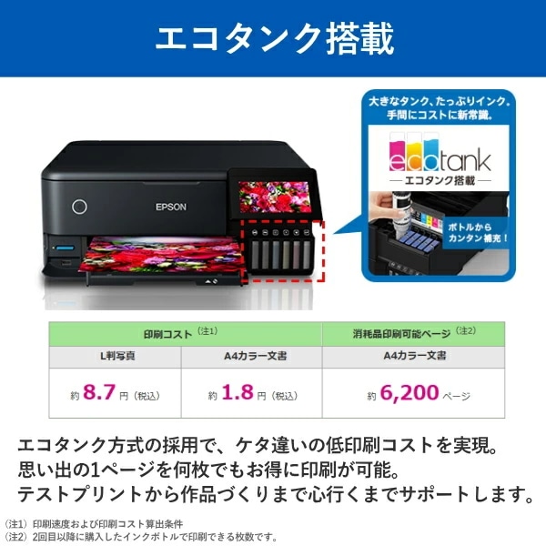◎ケタ違いの低印刷コスト エコタンク方式の採用で、ケタ違いの低印刷コストを実現。