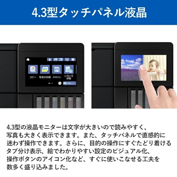 ◎4.3型タッチパネル液晶 4.3型の液晶モニターは文字が大きいので読みやすく、