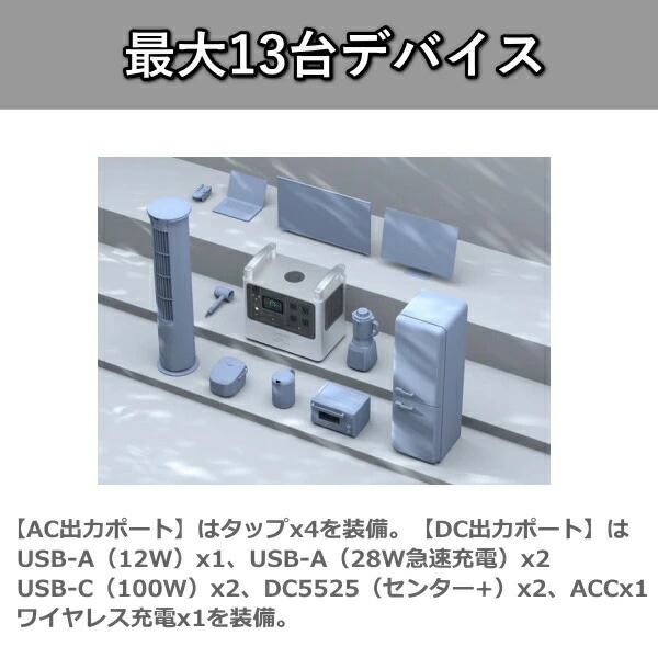 同時に13台のデバイスに同時出力可能で様々な電化製品をご使用頂けます。