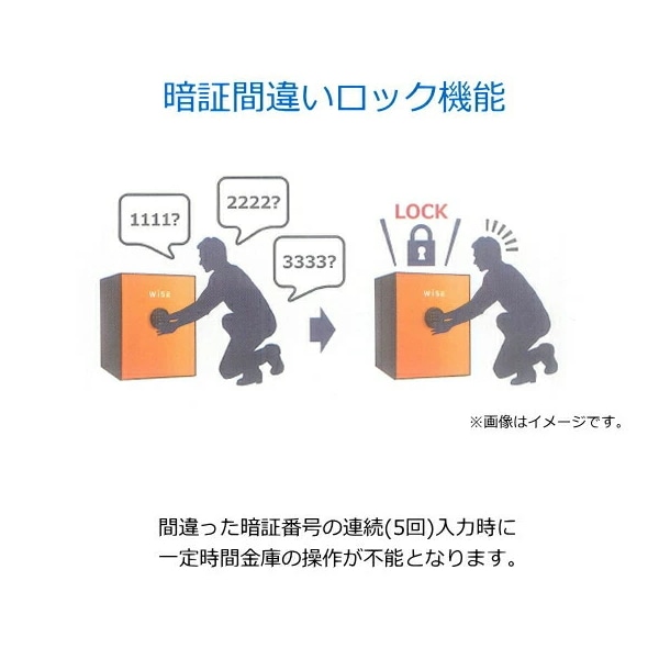 番号間違えロック機能 5回連続の暗証番号間違え入力によるロック機能付き。