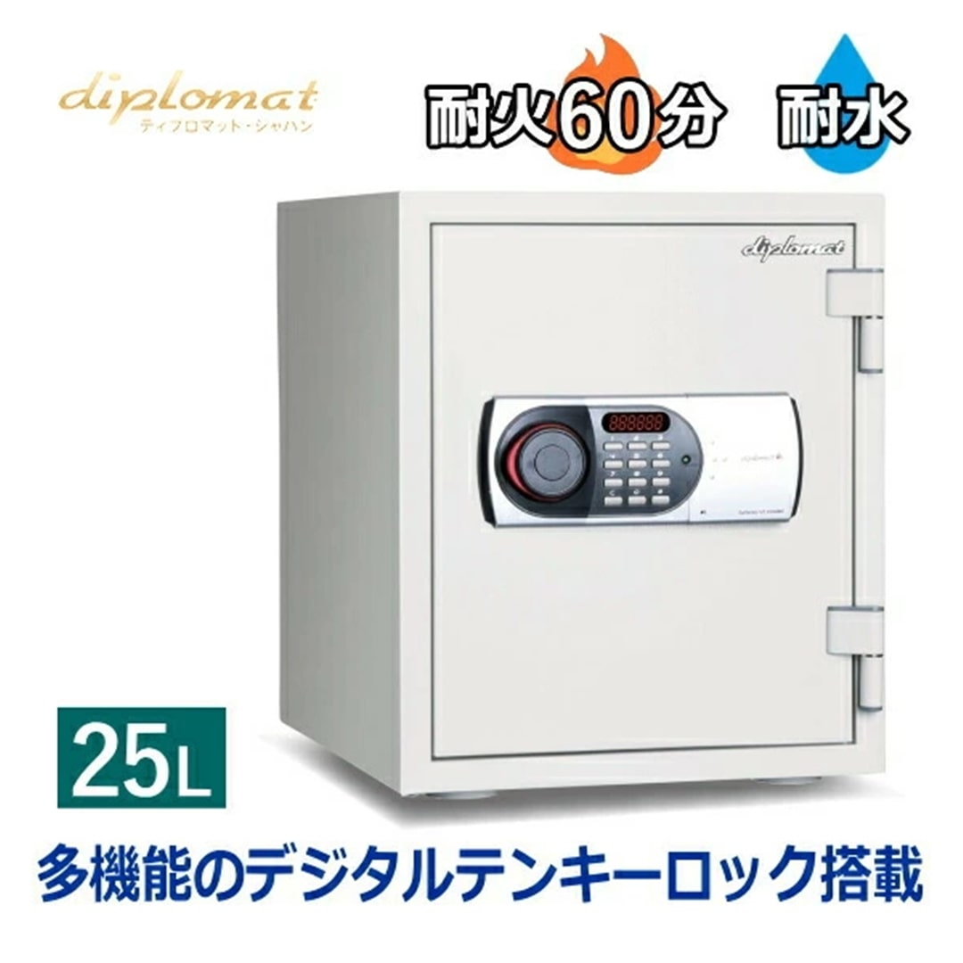 ディプロマット 耐火耐水金庫 25L テンキー式 耐火時間約60分 重量36kg 警報アラーム機能 覗き見防止機能 デュアルコントロール機能 暗証番号間違いロック機能 ホーム&オフィスセーフシリーズ 保証18カ月 125EN88WR 金庫 Diplomat ディプロマット金庫