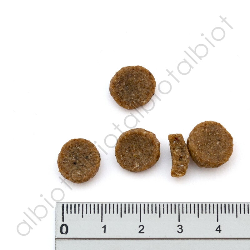 小粒から中粒サイズで、平べったい形を好む仔犬からシニア犬までおすすめのドッグフードです。