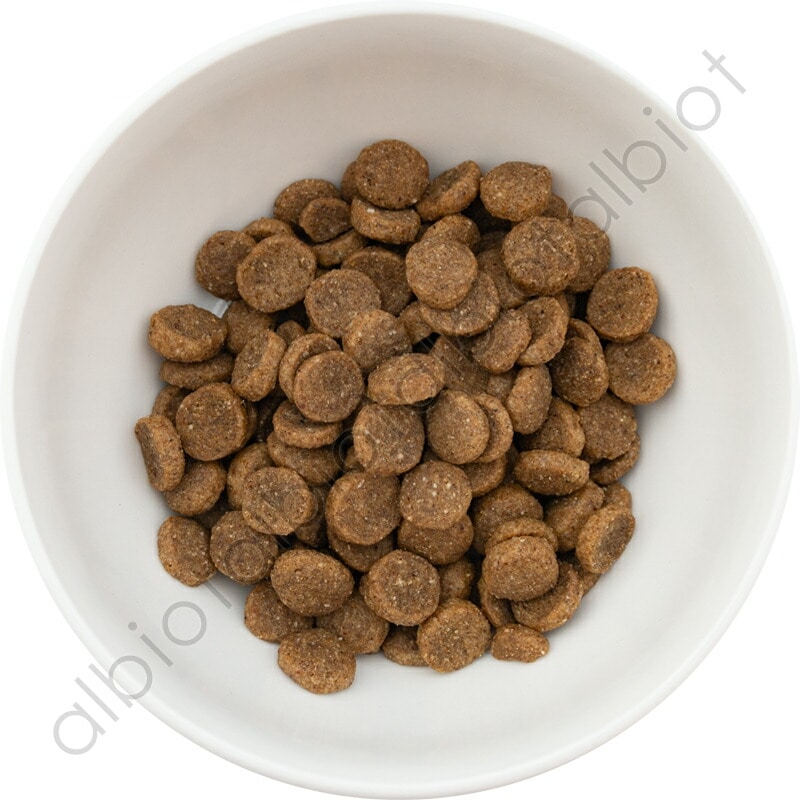 お肉の使用割合が高いため、通常のフードで配合されるような食いつきをよくするための油分はほとんど使われてません。油分が少ないことで、体臭や便の臭いの低下にもつながります