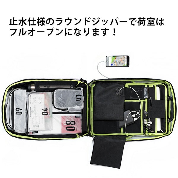 特徴: ●背負った状態のままアクセスできる2つのサイドファスナーポケット ●サイドファスナーポケットのホールを利用してバッグ内部のモバイルバッテリーとモバイルデバイスを接続可能 ●サイドファスナーポケットを利用してモバイルデバイスを収納可能 ●内装フロント側のパッキング用スペースは型崩れ防止のウレタンフォーム内蔵 ●デバイス収納用の内蔵パネルは着脱可能 ●内蔵パネルには15インチまでのノートPC / タブレットデバイス / 各種ケーブル / モバイルバッテリー / ポケット●WiFi/ メモパッド / ペン等が収納可能 ●背面のクッションパッドの裏側に配置したセキュリティーポケット ●背面に配置したストラップを使用してキャスターバッグのハンドルに固定可能 ●厚みのあるウレタンフォームを採用し、身体に沿ってカーブを描くショルダーハーネス ●本体素材「DURON」とYKK製「止水ファスナー」による軽量性と耐久性と耐水性 ●国内線、国際線を問わず飛行機内持ち込み可能サイズ ●ストラップの長さ調整可能 ●外側ポケット:3、内側ポケット:9(オーガナイザーパネル含む)、ペン挿し:1