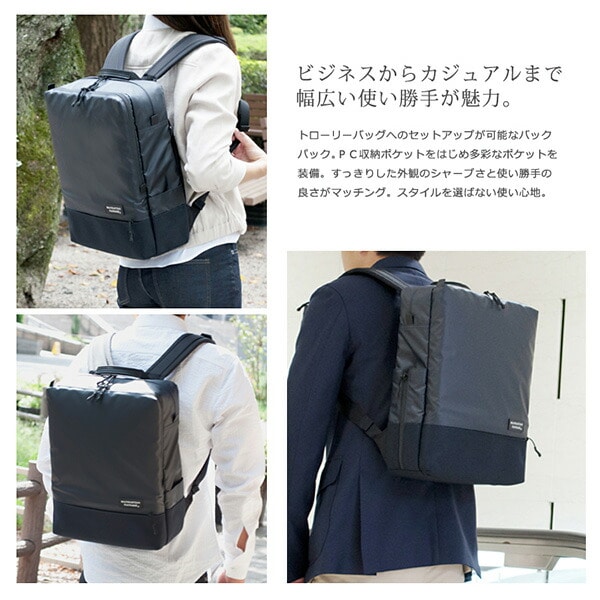男女問わずビジネス、通学、カジュアルのどんな場面でも使える軽くて機能的なA4対応バックパック。