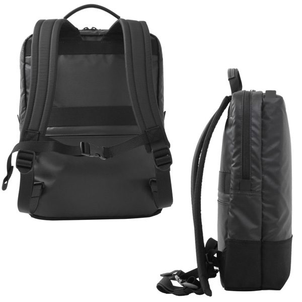 【仕様】 素材:特殊コーティング 高密度ナイロン、高密度ナイロンほか サイズ:W27 x H37 x D11cm (最大収納可能PCサイズ:W33 x H23.5 x D3cm) 重さ:495g 容量:9L