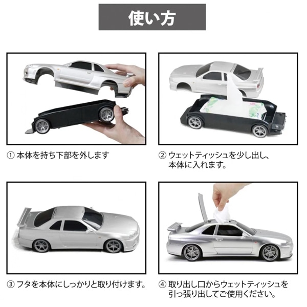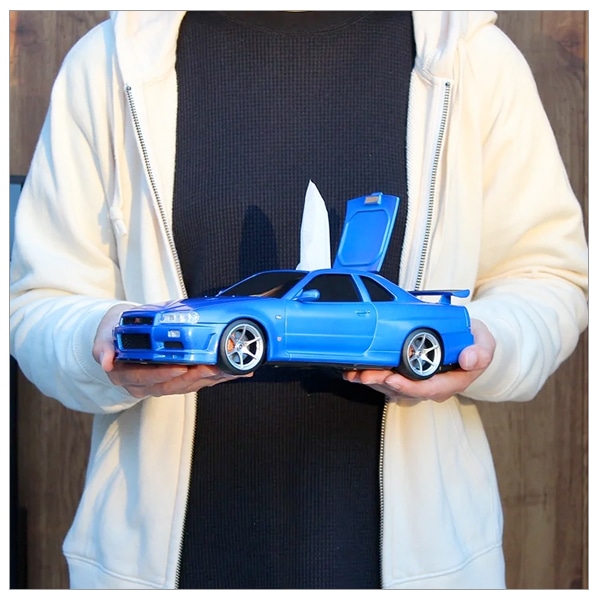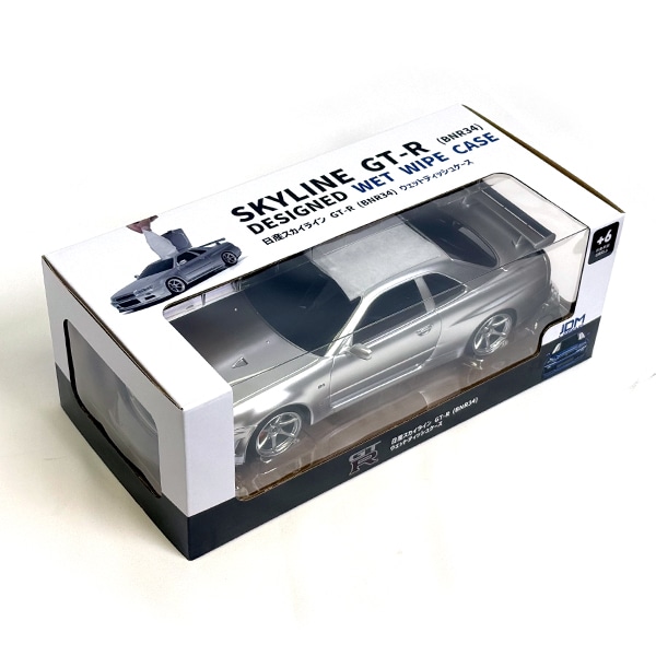 日産スカイライン GT-R (BNR34) 型のウェットティッシュケースが登場! 自動車メーカー、日産自動車公認のライセンス取得商品です。