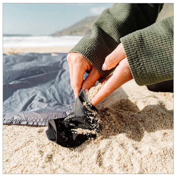 ビーチなど柔らかい地面の場合は砂を重しにすることができます。