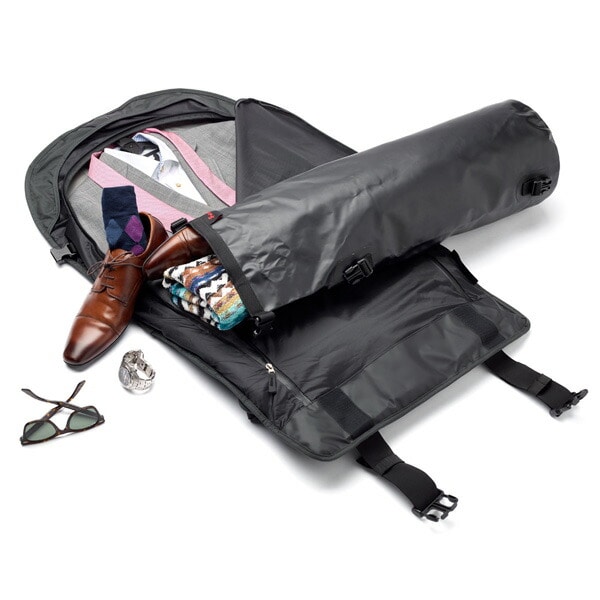 カジュアルなスタイルでスーツなどの持ち運びできるガーメントバックパック